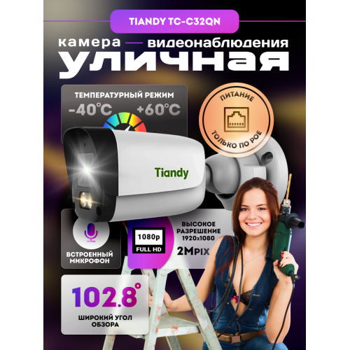 IP камера видеонаблюдения уличная с микрофоном и питанием по PoE Tiandy TC-C32QN (2 МП)
