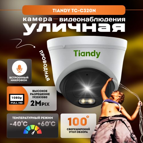Камера видеонаблюдения IP купольная с микрофоном и питанием по PoE Tiandy TC-C320N (2 МП)