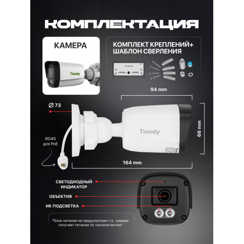 5 мая Камера видеонаблюдения с питанием ТОЛЬКО по POE (12V отсутствует)! В камере есть только датчик движения, в камере ОТСУТСТВУЕТ облачный доступ из приложения Tiandy, камера отлично подойдет как недорогая камера в составе системы наблюдения построенной на регистраторе любой фирмы (ONVIF присутствует). Принимайте во внимание при покупке данных камер.
