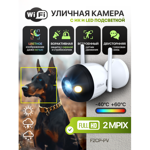 Уличная IP видеокамера видеонаблюдения DAHUA F2CP-PV (Wi-Fi 2Мп)