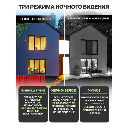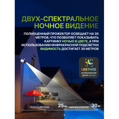 Уличная цилиндрическая IP-видеокамера с ИК-подсветкой до 30м и LED-подсветкой до 30м и Wi-Fi