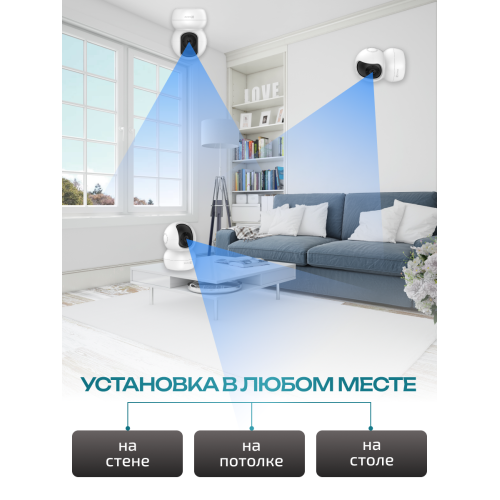 Комнатная маленькая видеокамера с Wi-Fi поворотная c подсветкой 10 метров EZVIZ TY1 1080P. Разрешение 2 Мп ; 2.4 ГГц WiFi, порт 1 x 10/100Мбит/с, DC 5 В/2А; от -10 до +45; 88 x 88 x 119 мм, 259 гр.; 103 х 103 х 186 мм (с упаковкой); Облачное хранение EZVIZ, карта Micro SD (до 256 ГБ); Умное слежение; Обнаружение движения, уведомление о тревоге; Двусторонная аудиосвязь.