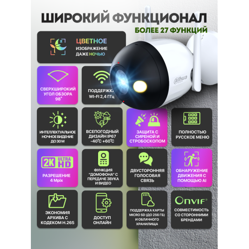 4 мегапикселя IP камера видеонаблюдения высокого разрешения с wifi уличная, цветная ночная съемка, с датчиком движения и LED подсветкой DAHUA F4CP-LED