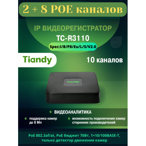 IP видеорегистратор 10 канальный с 8-PoE Tiandy TC-R3110
