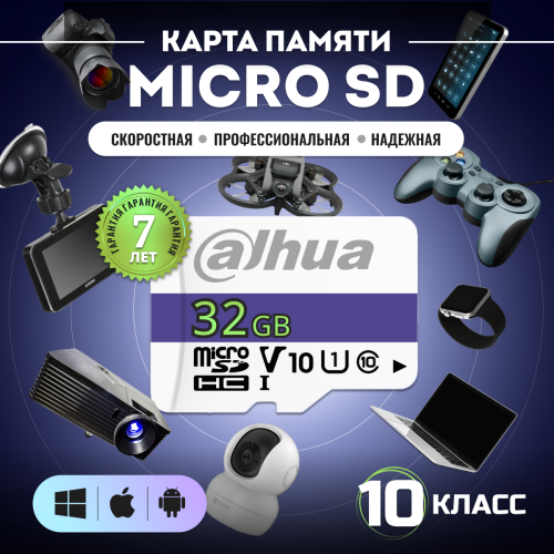 Карта памяти MicroSD 32Гбайт DAHUA DHI-TF-C100/32GB