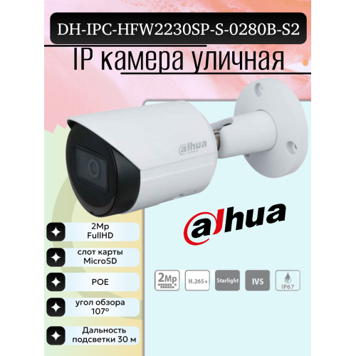 • IP видеокамера уличная с ИК подсветкой DAHUA DH-IPC-HFW2230SP-S-0280B-S2